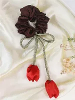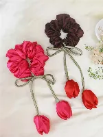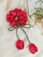 Pink Wood Tulip Satin Scrunchie(pack of 2)